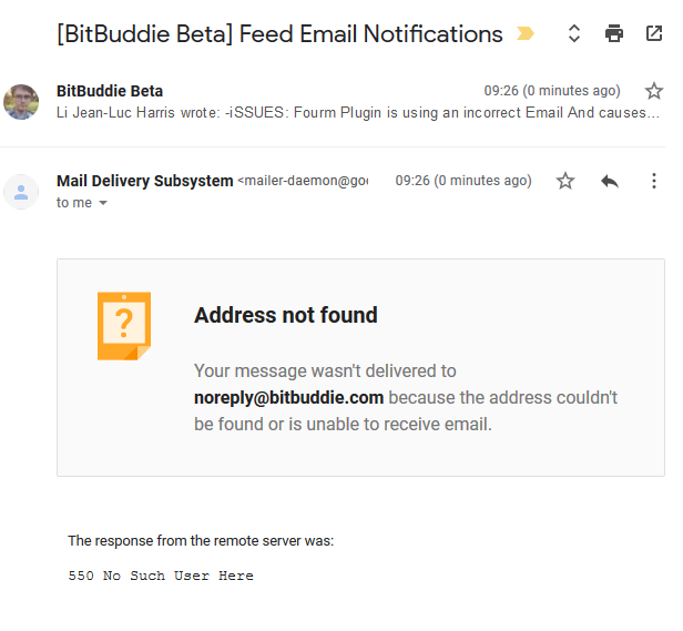 -iSSUES: Fourm Plugin is using an incorrect Email And causes a SMTP Error